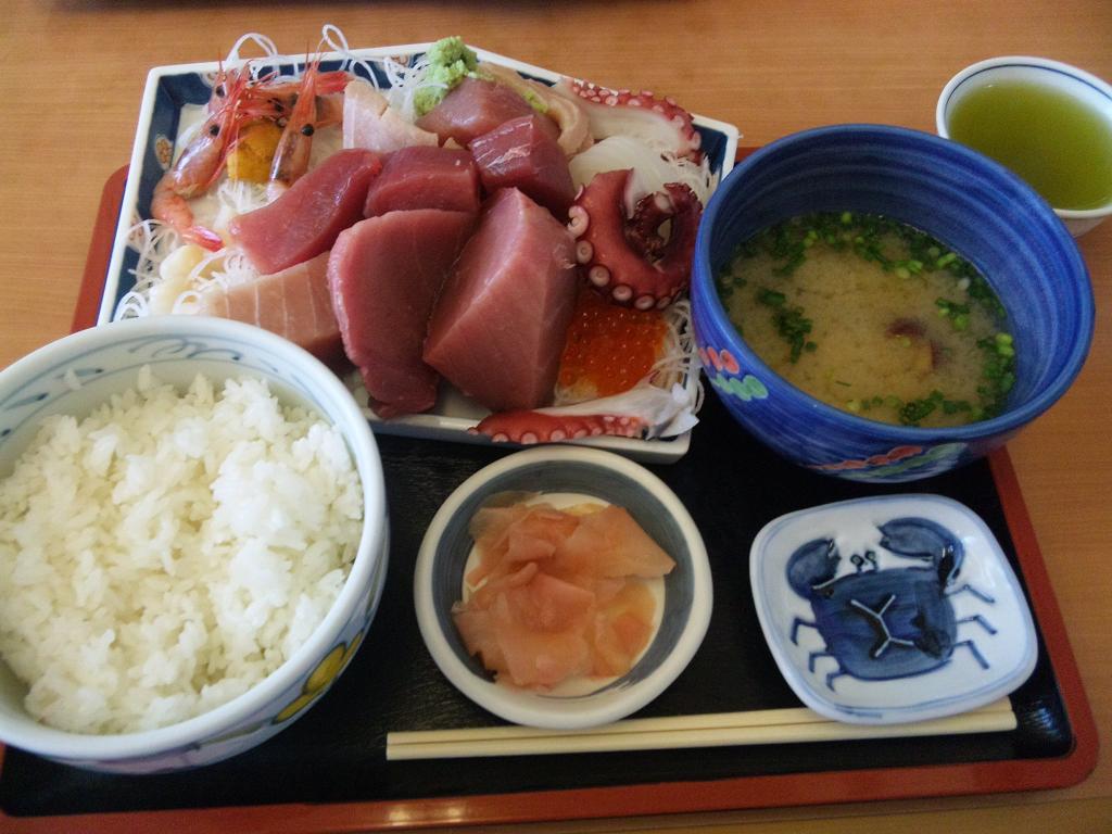 ←清水港の市場で食べれるお刺身定食。めちゃくちゃ大きいマグロの切り身。お刺身の皿の左上にのってるのが甘エビです。どれだけマグロが大きいかわかるでしょ!短冊切りじゃないよ。もう肉塊(笑)